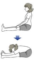 ◆第2体操:両脚を前に伸ばして座り、上体を前に倒す