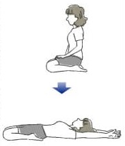 ◆第4体操:正座の姿勢から両脚の幅を広げ、後ろに倒れる