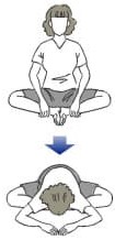◆第1体操:あぐらのような姿勢で両足裏の外側を合わせ、上体を前に倒す