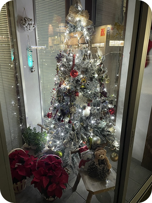 今年も完誠プランニングの正面にクリスマスツリーを飾りました。