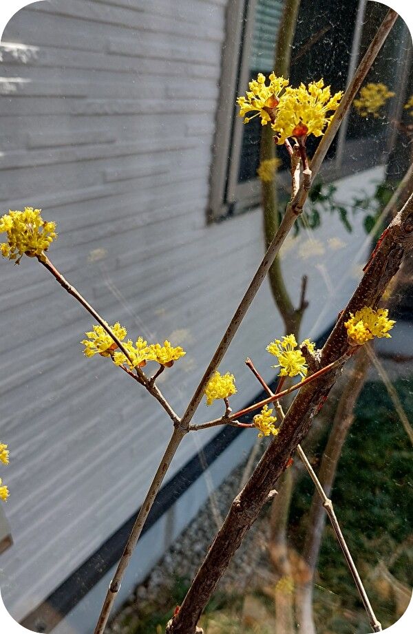 黄色い花の正体は「サンシュユ」という中国原産の花でした。