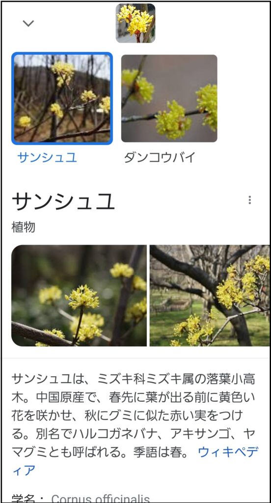 すると、アプリが関連のある花をいくつか探して教えてくれます。