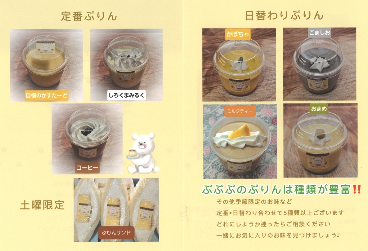 紹介 手作りぷりん ぷぷぷ 2025年2月13日 上市町にある手作りぷりん『ぷぷぷ』さんをご紹介します。 *-*-*-*-*-*-*-*-*-* 【住 所】 富山県中新川郡上市町広野1772-3(カーズシンノ内) 【営業時間】 11時~15時(売り切れ次第閉店) 【定 休 日】 日・月・火 *-*-*-*-*-*-*-*-*-* 甘さ控えめでとってもとっても美味しいぷりんです♪ 定番商品の「自慢のかすたーど」「しろくまみるく」「コーヒー」の他に 日替わりぷりんも用意されています。 ぜひ味わってみてください(^^)♪ Facebook postはてブLINEPocketFeedly