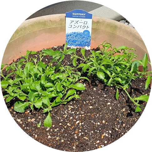 4月に植えたアズーロコンパクトも、5月に入ると可愛い花が咲き始めました。