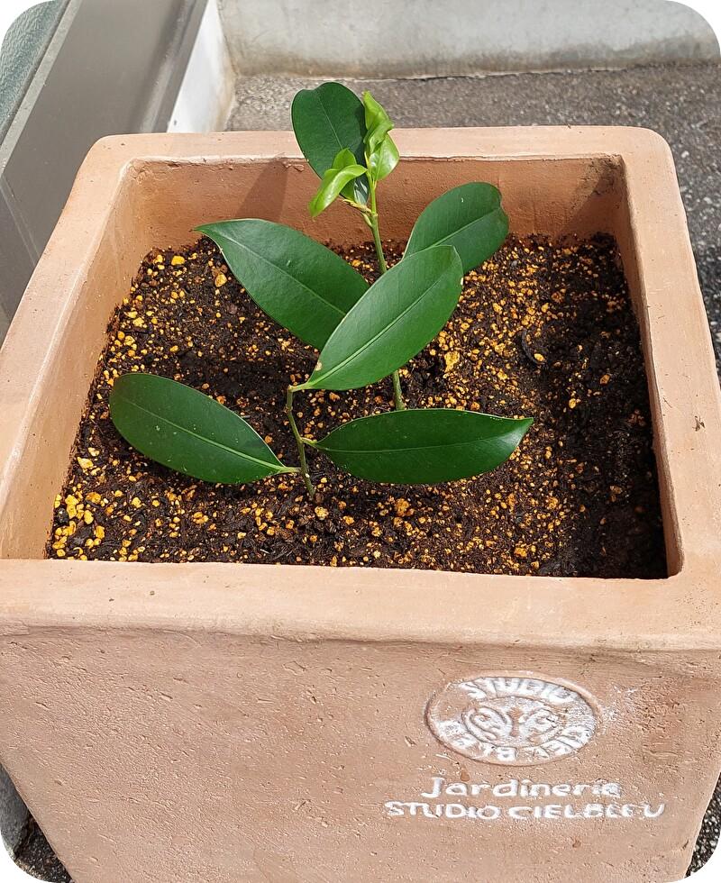 榊(サカキ)も鉢植えしてみました。大きくなるかな?